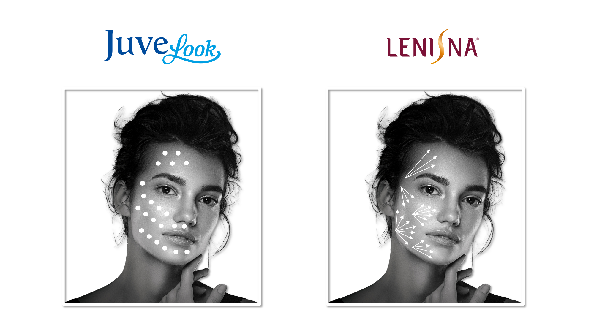 JUVELOOK und LENISNA sind Hybrid-Biostimulatoren. Das heisst, sie enthalten eine gut verträgliche Form von Polymilchsäure (PDLLA) in Kombination mit unvernetzter Hyaluronsäure. Während JUVELOOK vor allem für die oberflächliche Haut und die empfindliche Augenpartie konzipiert ist, wird LENISNA zum Volumenaufbau in tieferen Hautschichten eingesetzt. Ziel der Behandlung ist ein schonender und nachhaltiger Aufbau von körpereigenem Kollagen. Optimale Resultate lassen sich durch Kombination beider Produkte oberflächlich und subdermal erzielen. Erste Ergebnisse sind in der Regel nach wenigen Tagen bis Wochen sichtbar. Die Ausfallzeit nach der Behandlung ist minimal.