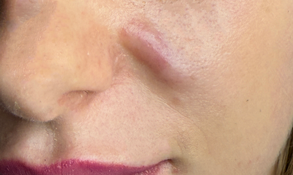 Narben mit vermindertem Volumen und dünner Haut entstehen vor allem bei ausgeprägter Akne oder nach Platzwunden im Gesicht. Durch Behandlung mit Peptiden (z.B. Sunekos) kann das Gewebe gestärkt und die Sichtbarkeit der Narbe minimiert werden.